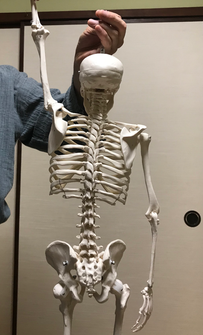 身体調整(指圧)と身体動作(機能訓練)の指導を長年行ってきた、脱力トレーナーによる、動く骨格模型「Ninja Anatomy 製」を用いた説明が行わえるところです。